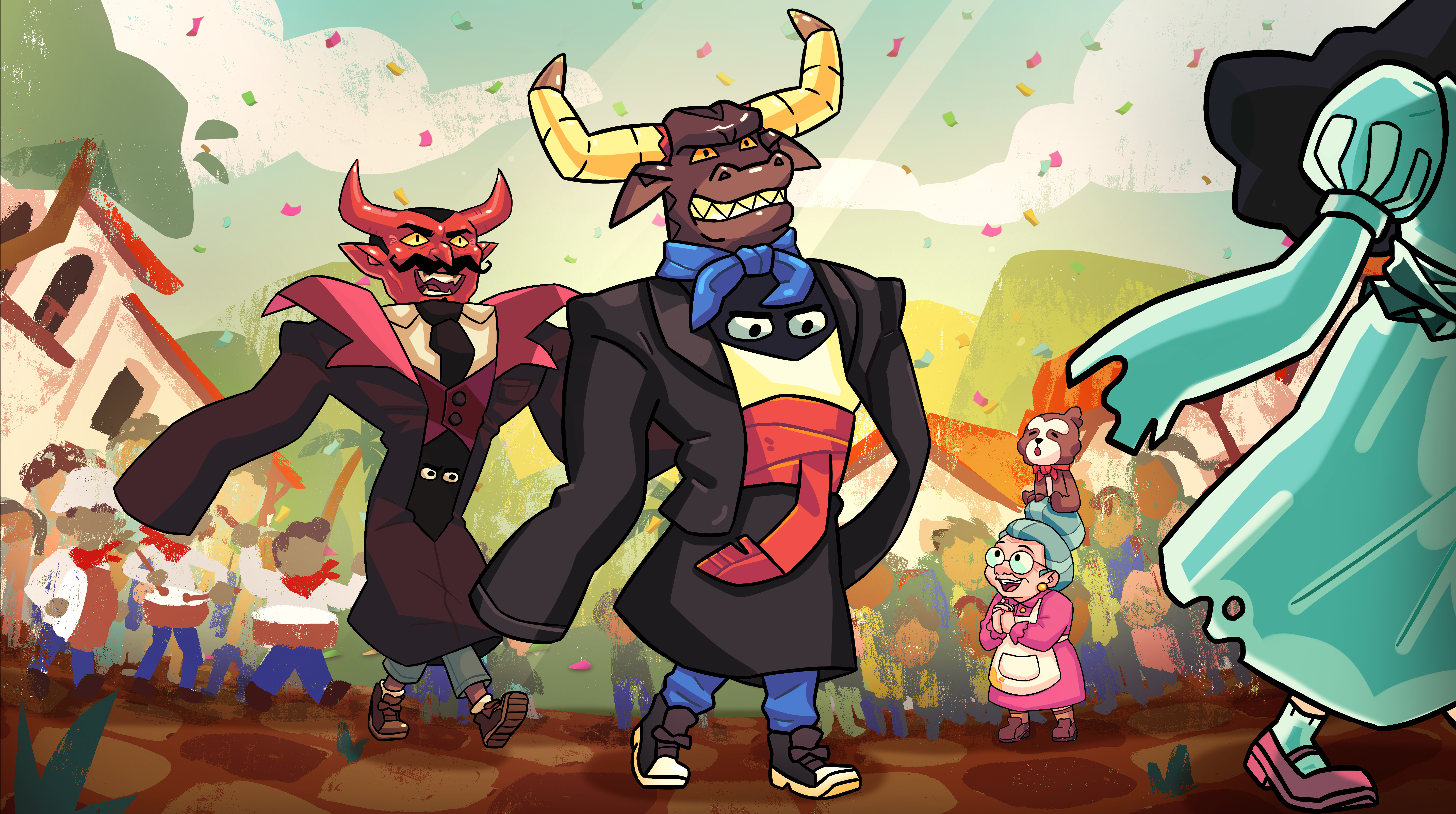 Platformer meets tower defense in this story-rich game inspired by the Costa Rican Día de Las Mascaradas festival. One day, grandma Tita's kids get possessed by the spirits of the gigantes and begin to wreak havoc upon the land. It's now up to her pet sloth, Teeko, to save their town.